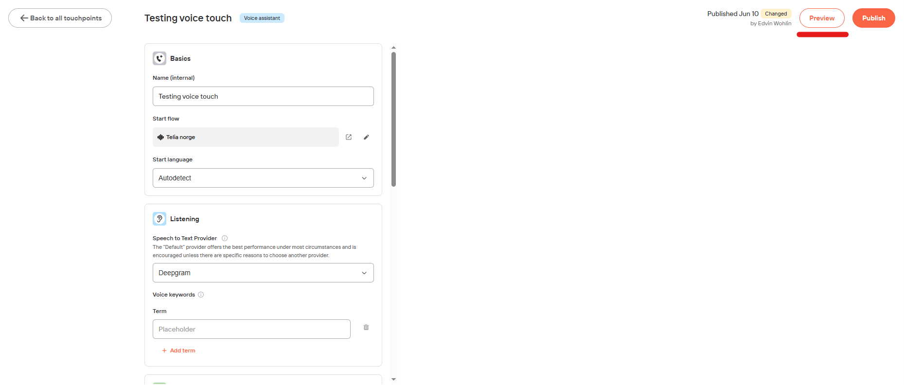 Select the Touchpoint for the voice assistant you want change the voice for.