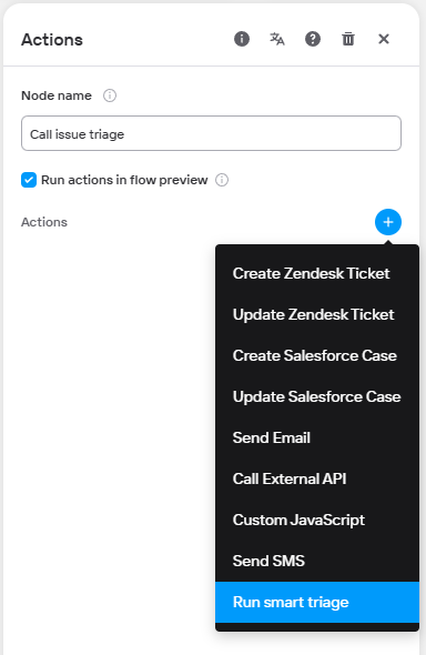 Click on the plus sign next to Actions and select the option Run smart triage