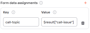Add the Field name from our Output fields as the Key. To have a dynamic value set the value for the Key should follow this structure: $result["call-issue"]