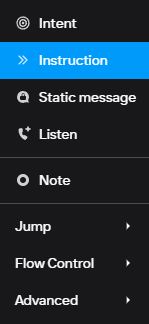 Instruction nodes contain the detailed information that informs the AI how to handle different intents. They are the primary building blocks of the Voice Assistant.