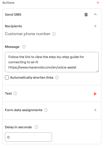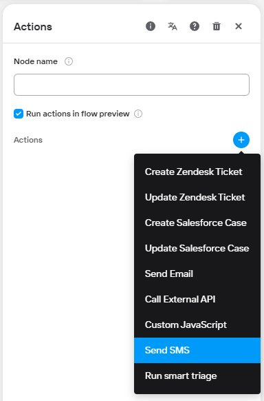 Click on the plus sign next to Actions and select the option Send SMS