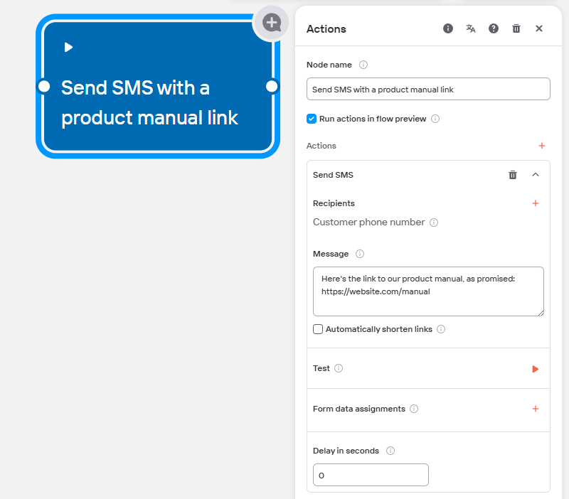 Add content to the Message field. This is what the SMS will contain when sent to the user.