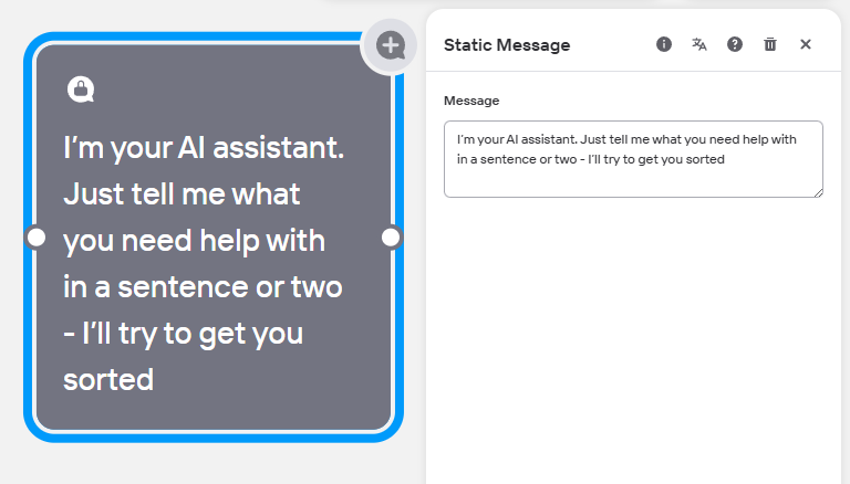 Message - Write exactly what you want the AI to say to the user when reaching the point of a static message.