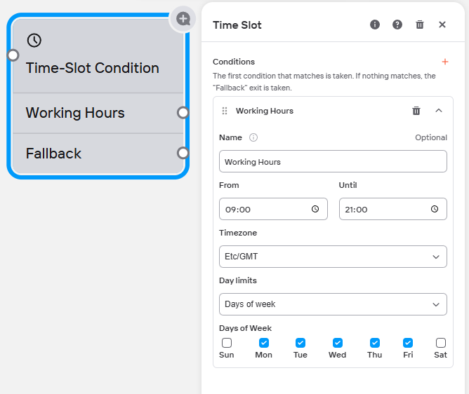 Time-Slot Conditions are used to handle conversations differently depending on the details in the condition.